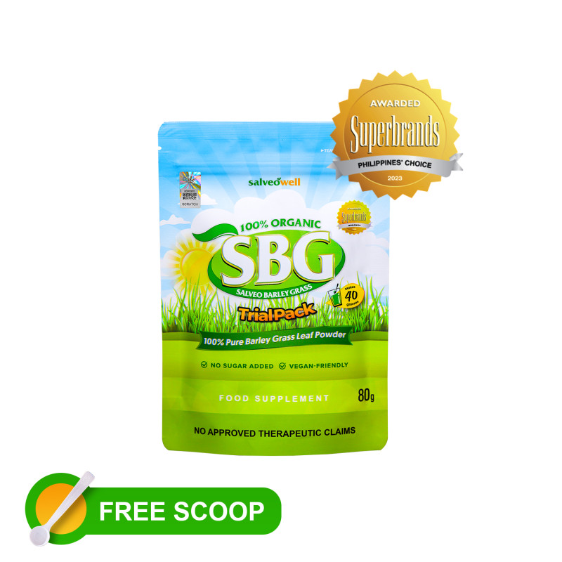 Salveo Barley Grass (SBG) Trial Pack consists of 80 grams of pure and organic barley grass. It canaccomodate up to 40 servings.