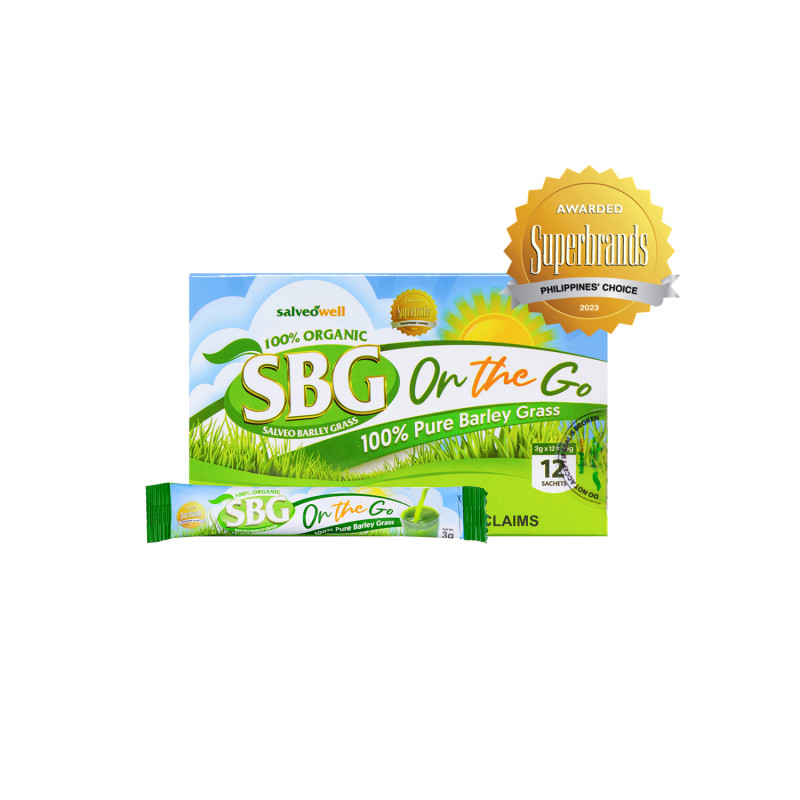 Salveo Barley Grass (SBG) On The Go consists of 12sachets with 3 grams each of pure and organic barley grass. It can accomodate up to 12 servings.